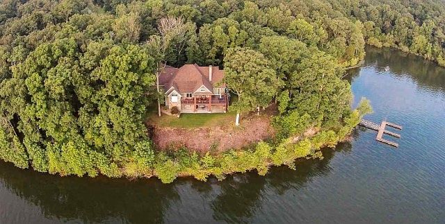 Gorgeous custom built home on the Main Lake area of KY Lake! This spectacular property sits on a point lot featuring 6 bedrooms, 4 full and 2 1/2 baths, a billiard room, family room, living room and den. Ceilings have double tray ceilings with double crown molding. Built in 2012, all of the features of this home have been upgraded for the finest in finishes, doors, windows, counters, trim and crown molding. Geothermal heat and air with 3 separate zones. Property deeded with dock permit.