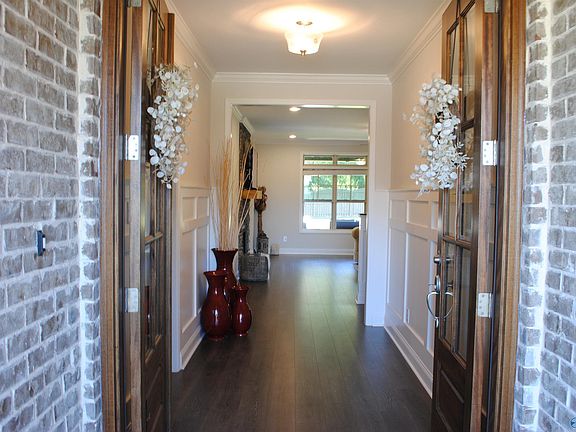 Like-new Jeff Benton 4BR/3BA full-brick home with 3-car garage on a quiet street backing to woods. Main- level master suite features upgraded LVP , spa-like bath with dual vanities, soaking tub, tiled shower, and huge walk-in closet. Two more bedrooms and full bath on the first floor. Open living room with stone gas fireplace flows into gourmet kitchen with gas cooktop, double ovens, convection microwave, and island. Upstairs offers a large flex space, 4th bedroom, and full bath. Walk-in attic provides ample storage. Private fenced backyard with patio. Beautiful garage with custom flecked epoxy floor. Neighborhood pool; walk to Legacy Elementary and The Shops at Pine Grove.