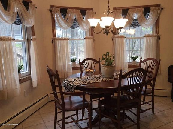 Get a feel for what it is like to really live in the heart of the Poconos. This Stunning 4 Bedroom, 3 1/2 Bath home, has a stoned fireplace, finished basement, 2 car garage sits on 1.1 acres and is surrounded by garden like landscaping. Great shed to store all your tools and pool equipment. Enjoy the summer months in the above ground pool during the day and entertain on you deck underneath the stars at night. Beautiful granite tops, like new appliances, and a complete entertainment family room with a built in bar. a Master walk-in closet, hard wood floors just to mention a few. Close to route 715, 611, 33, outlets stores, water parks and so much more. New metal roof installed in 2020 along with leaf guard gutter system. Both come with a lifetime warranty regardless of owner.