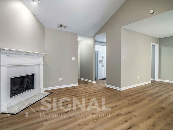 As you enter, you're greeted by the natural light glowing off the LVP flooring that flows seamlessly throughout, complemented by a vaulted ceiling in the living room, complete with a cozy fireplace. Easily entertain as the dining room connects to the living room, creating an inviting space perfect for gatherings.