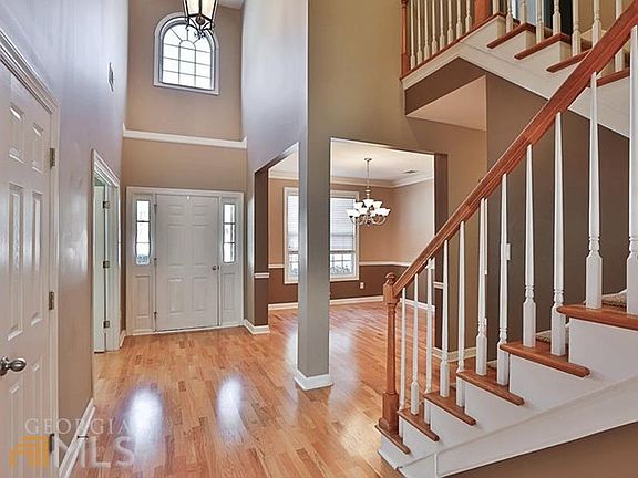 **Desired Peeples/Starr's Mill School District** Wonderful 2-story plan featuring Owner s suite, office, formal dining, PLUS additional bedroom and full bath on main level. The kitchen offers stainless steel appliances (double oven, cooktop, microwave, dishwasher, & refrigerator included) , solid surface countertops, island, breakfast area & large panty. Upstairs boasts 3 bedrooms (including bonus with closet), a full bath, & a loft/flex space that is perfect for playroom, media area, or den. Step outside and enjoy the HUGE covered porch that overlooks the in-ground salt water swimming pool with waterfall. NEW carpet & exterior trim paint. Cul-de-sac lot conveniently located to schools & shopping. Move in today!