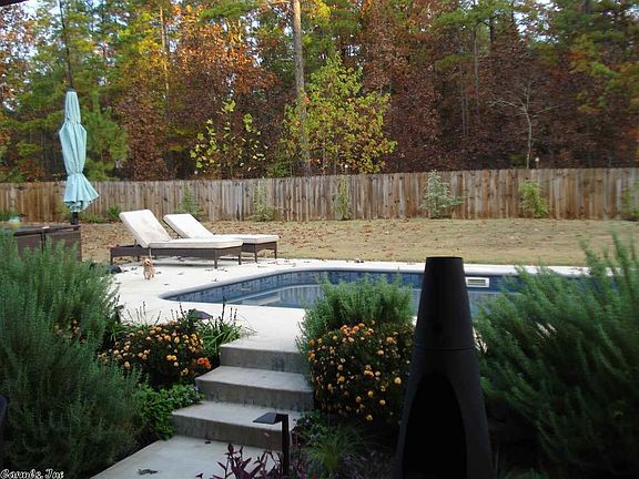 One level custom contemporary with open floor plan. Stained concrete floors throughout. Large concrete island, glass tile backsplash. Modern gas fireplace in great room. Split bedroom floor plan with all bedrooms having walk-in closets with custom built-ins. Large Master bedroom w/ wall inset fireplace. Master shower has dual rain heads and cobblestone tile. Covered patio, new salt water pool. Extensive landscaping with privacy fence backing up to woods. Custom cabinets in garage. Built in basketball goal.