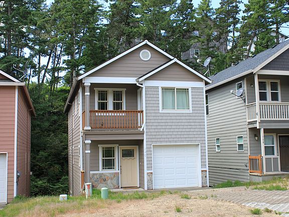 AFFORDABLE GEM! Decks on all 3 levels look out to a beautiful green wall of trees sheltering you from the coast breezes. Upscale interiors include architectural ceiling & stone tile. 2 cozy frplcs, wetbar, open kitchen, & a touch of luxury with your own personal elevator. Access the beach along Fall Creek trail without crossing the highway. Vacation rental allowed. No HOA fees. Not in flood plain, not in tsunami zone. Great value!