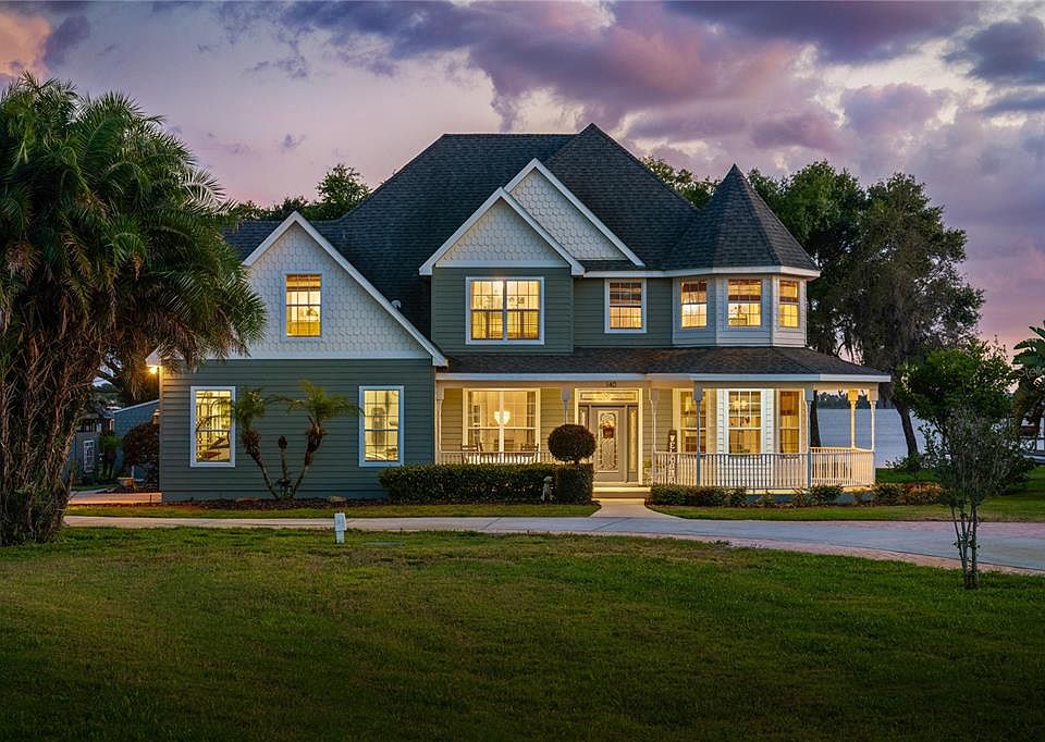 Nestled on Lake Hartridge on nearly one acre and on a quiet cul-de-sac this exquisite Victorian home stands as a timeless testament to elegance and Southern charm. Set against a picturesque backdrop and endless views of Lake Hartridge, this property offers a rare opportunity to indulge in waterfront living at its finest. With its grand architecture and intricate details, this property seamlessly blends classic Victorian aesthetics with modern comforts. This custom-built three-bedroom, three-bath plus den and flex space home offers nearly 3,300 square feet of living space. Every detail of this property exudes sophistication and craftsmanship. The main level welcomes you with gracious living areas bathed in natural light. The great room with its towering ceiling, brick gas fireplace, and custom built-ins, is open to the gourmet kitchen where culinary enthusiasts will delight in the premium Thermador and Bosch appliances, custom cabinetry, granite counter space, and a charming breakfast nook overlooking the pool and lake. From casual brunches to elaborate feasts, this culinary haven is sure to inspire creativity and culinary delights. The impressive owner’s suite is an absolute retreat, offering unparalleled comfort and luxury. Step out onto your private balcony and take in panoramic views of the pool and lake. Inside, a welcoming fireplace invites cozy evenings, while a convenient kitchenette/wet bar ensures refreshments are always close at hand. The noteworthy closet, equipped with its own laundry appliances, offers ample storage space for dual wardrobe essentials. Pamper yourself in the en-suite bath, where a lavish soaking tub and separate shower promise indulgent relaxation after a long day. Additional features of the home include spacious guest suites, one with its own laundry, a den flooded with natural light, usable loft space and beautiful guest baths. Outback, an impressive screen enclosure covers the paver brick patio and heated pool with waterfall hot tub as well as the covered seating area. The expansive grounds beckon with lush gardens, sprawling lawns, and a private two-story dock with a sun deck and a boat lift extending over the crystal-clear waters. Whether enjoying a leisurely afternoon of boating, fishing, or simply soaking in the breathtaking vistas, this outdoor haven promises endless opportunities for recreation and relaxation. The Chain-of-Lakes bike trail is very close to the property and runs between the city of Lake Alfred and the city of Winter Haven. Lake Hartridge, with somewhat of a figure eight shape, has a surface area of 433 acres and has access to eight other lakes on the Southern chain as well as access to Legoland’s amenities and five restaurants accessible by boat. You will also find a small airport that is home to several seaplanes. The lock on the lake leads to the Northern Chain with additional lakes. Winter Haven is known for its world-class fishing and water skiing. From Lake Hartridge you can also access both Lake Hartridge Nature Park and Aldora Park. The Nature Park also has a fishing pier, a half-mile (0.80 km) walking trail around a pond, a playground, and picnic facilities. Located 25 miles from Disney and 35 miles from MCO (Orlando Airport) this Victorian masterpiece offers the perfect blend of privacy and convenience. With easy access to shopping, dining, and outdoor activities, as well as major highways, this is truly a place to call home. Owner has just replaced both AC units.