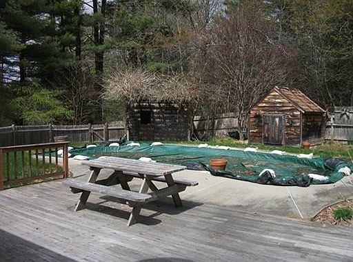 ESTIMATES are in from the contractors for a roof and septic! One owner log cabin with a huge master bedroom. This home has a fireplace, a walk out basement & an open floor plan with a perfect view of a patio and fenced inground pool. The master bedroom has a private balcony over looking the wooded back yard. There is some TLC needed but this is a solid home with a full basement with high ceilings. Newer heating system. Call agent for additional details.