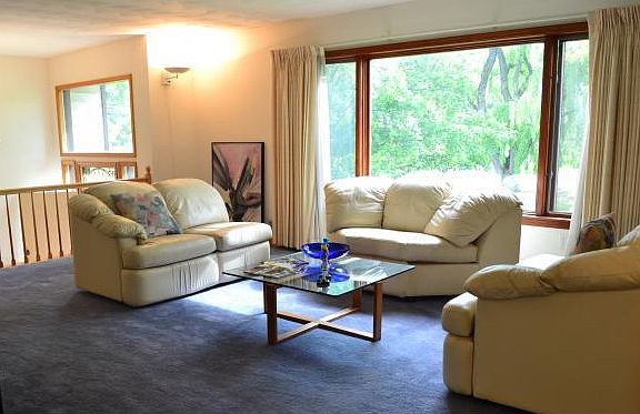 Quality construction this unique bilevel style air conditioned home has a bsmt! Large LR with stone FP opens to a formal DR with sliding doors to oversized new deck with distant views. Eat in kitchen with granite countertops. Master suite with multiple closets and large private bath. Two more bedrooms share an addl bath on main level. Family room with second FP, private guest suite or home office includes bedroom, bath and outdoor entrance. AMAZING detached heated 2-3 car garage with large storage attic plus attached 2 car garage. Distant views. Walk to shopping & services.