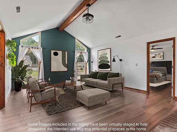- Features: Beamed Ceilings, Ceiling Fan(s), Fireplace, Vaulted Ceiling(s)