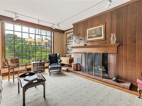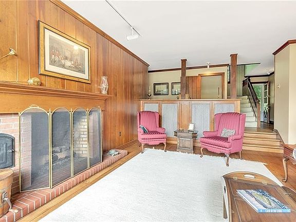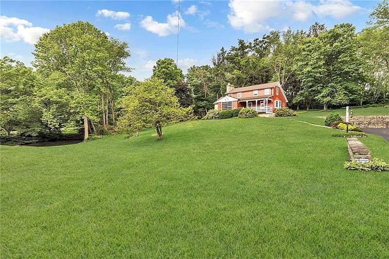 Inspired by Henry Fonda's Connecticut Farmhouse this custom built home has been featured on home tours & photography shoots! The pristine 2 acre lot is reminiscent of an English garden w/rustic stone walls, babbling brook & serene duck pond. A stone pathway introduces a home full of personality, where sophisticated charm & Old Williamsburg décor combine to give peaceful comfort. The main fl features a sun drenched livingrm w/HW flooring, gas fireplace & huge picture window - a perfect frame to the beautiful grounds. Diningrm features HW floors & window seat while EIK includes a large island w/seating, Corian counters & Roach & Ziegler cabinets. Main fl den is steeped in character w/stone fireplace, window seat, wet bar & attached full bath - could be a fabulous master suite! Turned staircase leads 2nd fl where 3 sizable bedrms & full bath await. Finished LL includes full bath. In addition to a 2 car integral garage, a huge heated detached garage/workshop. Desired neighborhood w/pool!