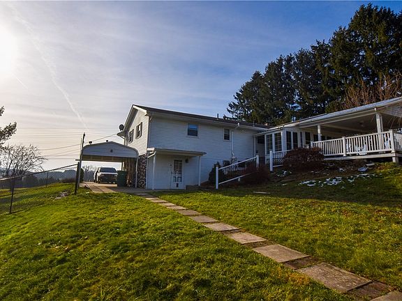 This charming 3-bedroom, 3-full-bath split-entry home sits on a spacious 1.4-acre lot in the Knoch School District, ideally located between the historic town of Saxonburg and the City of Butler. The home boasts newer luxury vinyl flooring throughout most of the first floor, enhancing its modern appeal. The kitchen features beautiful hickory cabinetry, a stylish tile backsplash, and brand-new stainless steel appliances, making it perfect for home cooking and entertaining. The large lower-level family room is a highlight, with a brick log-burning fireplace that adds warmth and character to the space. A sunporch extends the living area, offering a bright and inviting space that opens to a covered porch with stunning views of the private, nicely landscaped yard. Additional features include a concrete driveway, a shed with a workshop area, and plenty of room for outdoor activities.