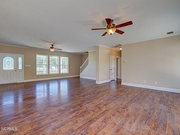 This 3,600 sqft home sits on 14.6 acres of land that would work perfect as a horse ranch. The downstairs offers a large living/family room, a gourmet kitchen with separate dining room, a master bedroom with master bath and a large walk-in closet, an additional bedroom and a full bath. Upstairs there are 4 rooms that can be used as bedrooms, a full bath and a second family area.The shady porch in the front and the sunny deck with pool in the back complete this privacy retreat. Located minutes from Hwy 17 and 30 minutes from downtown Wilmington and Topsail Beach.