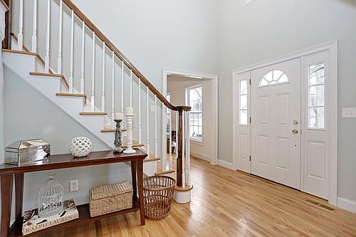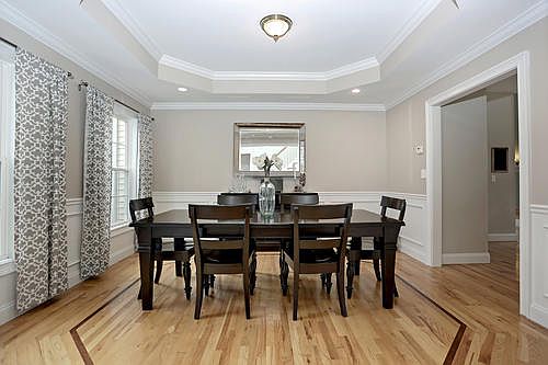This newer construction home sits perfectly at the end of a cul-de-sac upon a sprawling 0.40 of an acre. As you enter you are greeted by a gorgeous two story foyer decorated in an abundance of natural light and flanked by the Formal Living and Dining Rooms. Gleaming hardwood floors run throughout and guide you into the Formal Dining Room detailed with a tray ceiling, recessed lighting, a wall of windows welcoming in the sunlight, walnut inlay and raised paneling. The large Eat-in-Kitchen, which flows graciously into the oversized Family Room, is perfect for the inner chef and entertainer. Featuring a large island with seating, the Kitchen is designed with an abundance of storage, granite counter tops, recessed lighting and stainless steel appliances. Make your way into the two-story Family Room which is nothing less than impressive with a vaulted ceiling, a gas fireplace to warm you on the cold winter nights, windows galore and access to the deck, overlooking the green and private yard. The home office and powder room finish the 1st floor. Make your way upstairs and find four bedrooms, including the Master Suite fit for a king and queen! Featuring a large walk-in closet, the warmth of wall-to-wall carpeting, a tray ceiling surrounded by crown molding and a generously sized bathroom with a double vanity, shower and jacuzzi...not a detail was missed. The huge forth bedroom could double as a guest bedroom or bonus room. The outdoor living area completes this perfection with a deck and expansive yard...great space for BBQs, parties & lawn games. Just a few minutes to schools, parks, shops, train and restaurants, 140 Canary Place is the perfect place to call home.