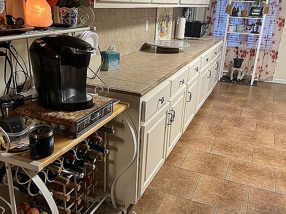 Lots of cabinets. Vaulted ceilings. Large walk in closet. Large back patio covered. Nice front porch. Extra concrete driveway. On golf course.