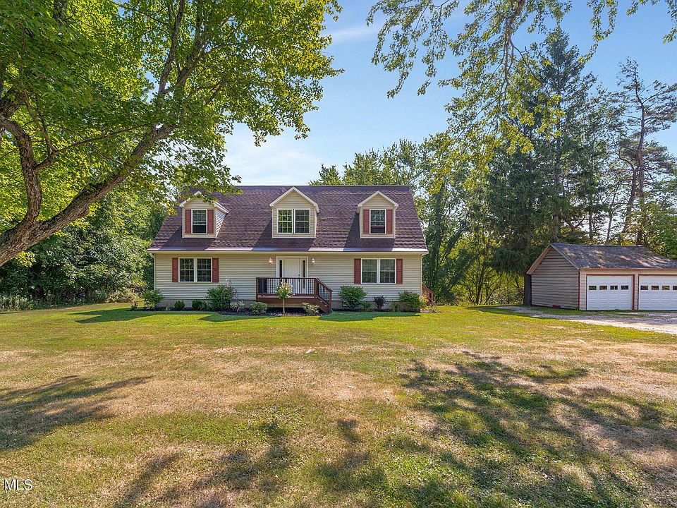 Nestled in the Averill Park School District - this 4-bedroom, 3 full bath Cape Cod offers over 2,300 sq ft of living space on 1.5 private acres. The first floor features hardwood floors, a bright living room, a formal dining room with inlaid wood detail, and a spacious kitchen with stainless steel appliances and deck access. The first-level primary suite includes a soaking tub, separate shower, and ample closet space. Upstairs are generous bedrooms and a full bath. The walkout basement offers excellent potential for finishing into additional living space. Outside, enjoy the above-ground pool, detached 2-car garage, and an expansive yard surrounded by mature trees. This property offers privacy, versatility, and room to grow.