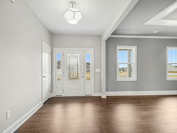 This ABSOLUTELY GORGEOUS 3-bedroom NEW Construction RANCH home perfectly balances style & functionality offering an open floor plan designed for modern living*As you step inside you'll be greeted by a spacious & inviting atmosphere perfect for entertaining family*Beautifully appointed kitchen featuring a stylish backsplash & an abundance of cabinets along with an eat-at island provides a perfect spot for casual meals or morning coffee while the large family room is graced with a cozy gas log fireplace*Retreat to the luxurious master suit where you'll find a trey ceiling that elevates the space & a spa-like ensuite bathroom complete with a tile shower with a bench & a dual vanity for added convenience*The walk-in closet features custom wood shelving, making organization a breeze*Enjoy the versatile bonus room equipped with a half bath ideal for guests or as an office*Unfinished storage on the second floor offers endless possibilities—create your dream space, whether a playroom, home gym, or additional storage*With thoughtful details like a folding table in the laundry room & a drop zone this home is designed with your busy lifestyle in mind*Side-load garage adds an extra touch of curb appeal, making this property truly stand out.