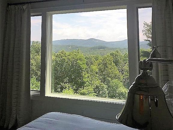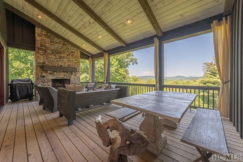 A "FOREVER VIEW" mountain home with space for all! Modern, bright, superior designed and constructed home high atop Trillium Ridge, exquisitely decorated and furnished (with few exceptions) and ready to move in NOW. Bring all the kids and their friends: 4BR, 4 1/2BA plus a "bunk room" with built-in bunk beds for six. The current configuration has beds for 14! Lower level has a large media/family/game room with a large screened-in game porch with steps to a 20+ft climbing wall. Open living room with massive stone fireplace, gourmet kitchen, and distinct dining area - all overlooking the seemingly endless view! Great entertaining deck with its own large stone fireplace. Nice private second bedroom suite on the upper floor. Great location, close by the Apple Orchard Fitness Center, indoor tennis courts and the picturesque Trillium Garden Golf 9-hole Chip 'n Putt course, as well as the croquet court. Your ownership/membership will also include generational privileges and all amenities from the Trillium private links and lake community, including deeded lake access.