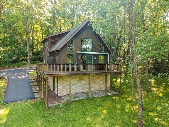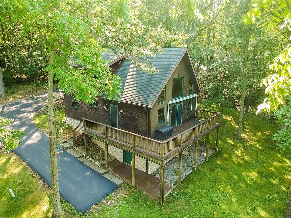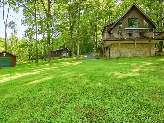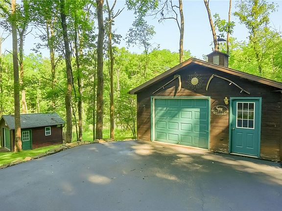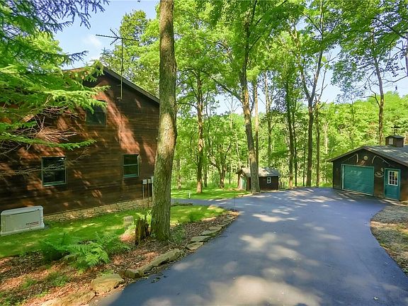 Privacy Prevails! Paved driveway leads to the 1.49-acre hideaway! Open floorplan showcases the beautiful, beamed ceilings and the hardwoods are highlighted by the abundance of natural lighting! Spacious owner's suite with full bath! Many upgrades including, Generac whole house generator, Leaf Guard gutters on all 3 buildings, water filter system, 2-year-old furnace and central air, hot water heater, sun setter awning and wood stove for those cold winter nights! Enjoy the pristine peaceful view from the huge wraparound deck! Oversized 20X20 1.5 detached garage! Bonus 15X14 Storage shed! Convenient location to Interstate 79 and Slippery Rock University! This is a rare find!