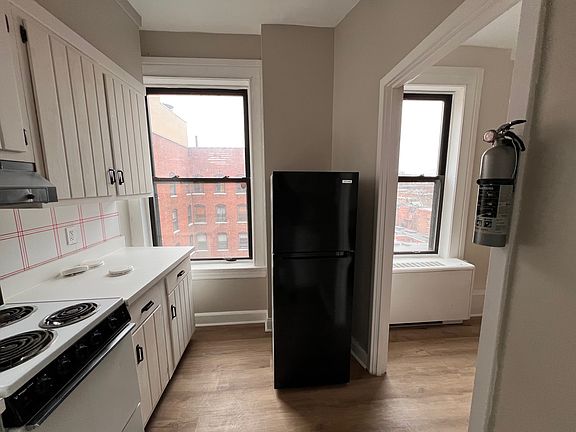 This charming condo in the historic Kimball Towers is ideal for anyone looking to be within walking distance of restaurants, shopping, entertainment, and even MGM! Enjoy the elegance of the building's luxurious lobby, complete with a cozy seating area and a beautiful fireplace. The property features modern facial recognition access and 24/7 security guards for peace of mind. Large windows flood the space with natural light, creating a bright and inviting atmosphere. Plus, there's a convenient common laundry room just down the hall with card-operated washers and dryers! Renter is responsible for electric utility bill. Water is included. First, Last, and Security due at signing.