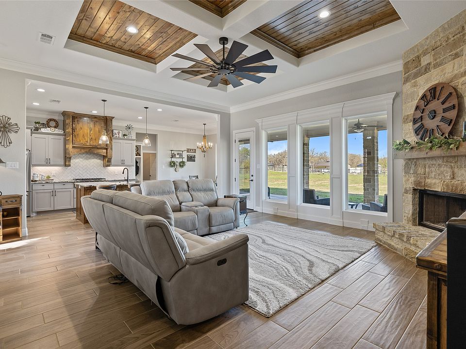 This immaculate 4-bedroom MK custom home in Bittersweet Springs is designed for seamless everyday living and entertaining. This home has upgrades galore! The living room beckons with its cozy stone fireplace and charming recessed wood ceiling. Large windows frame picturesque views of the neighboring pasture. Step into the gourmet kitchen, equipped with a professional grade gas stove and convection oven with air fryer. Custom cabinets, granite countertops, a spacious island and a walk-in pantry complete this culinary haven. Unwind in the private primary bedroom suite with a soaker tub, dual vanities, and a generous walk-in closet. Outside, pipe fencing surrounds the 1.248-acre premium lot with freshwater access run to the back of the property. The widened and extended driveway, along with the oversized 2-car garage, provide plenty of space for parking and storage. With Springtown ISD, Fiber optic internet,no HOA and no city taxes, this home offers a lifestyle of comfort and convenience.
