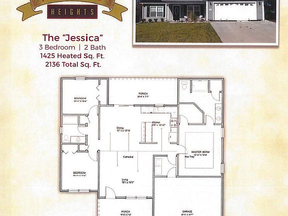 3 Bed 2 Bath Split floor Plan, Under Construction - The Jessica Plan on 1/2 Acre Lot with a Front and Rear Porch. Aynor School district is one of the most sought after in the state and is known for its extremely high quality education. Home features large rooms, granite counter tops, real hardwood floors, cathedral ceilings, very oversized two and a half car garage….. Way too much to list!! Property is HUGE with over a half acre and is close to shopping and restaurants. It’s just a short 30 min. drive to the white sands of Myrtle Beach, but you won’t have to deal with the traffic or the tourists. TBD without Dormer.