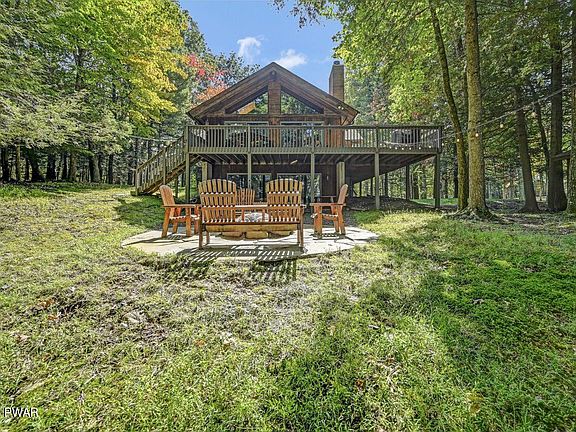 Unique opportunity to own one of 3 Scandia homes in Tanglwood Lakes! Private Lake Wallenpaupack lakeview home on 1 acre on the 7th hole of the Golf Course. This cedar chalet features 5 bedrooms & 3 full baths. Experience the serenity of a personal sanctuary within your home, complete w/soaring vaulted ceilings, Scandia pine & a fieldstone fireplace. The newly remodeled kitchen features rustic hickory custom cabinets, quartz countertops & fieldstone accent walls. The primary BR has a walk in closet, private deck, full bath & is on the main level. Relax & enjoy the views of Lake Wallenpaupack on your wrap around deck or head down to the newly designed patio w/a bluestone Hawleywood firepit. Recent updates include a newly paved driveway, new septic system & shed. ThermoFlo heat & central AC., Beds Description: 2+BedL, Beds Description: 2+Bed1st, Baths: 1 Bath Level L, Baths: 2 Bath Lev 1, Eating Area: Dining Area