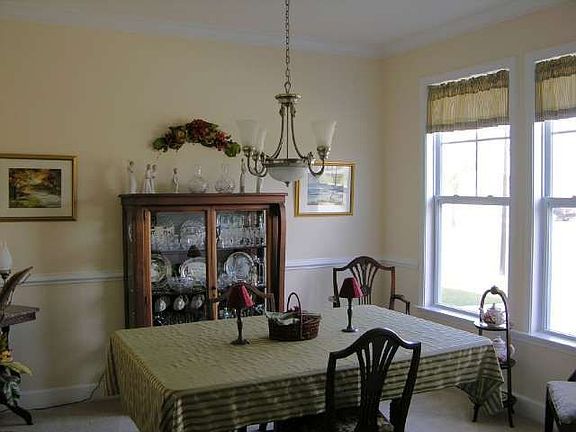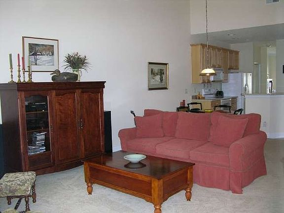 New, Townhouse style condo with open floor plan, vaulted ceilings; Master bedroom on 1st floor with vaulted ceiling overlooking pond; Master bath w/ jetted tub, double bowl vanity, large shower; Kitchen has upgraded 42" cabinets, smooth top stove, large pantry; formal dining room: two nice sized bedrooms upstairs plus a loft and huge walk in storage area: screened porch overlooks pond w/fountian and woods beyond. Very private!
