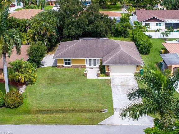 Prime North Naples Location with NO RULES, NO RESTRICTIONS! You'll be captivated by this stunning 3 bedroom, 2 bathroom, 2 car garage home boasting 1530 square feet of open living in Palm River! The beautiful, double door entry opens into a grand open space with plenty of room for living and dining on striking wood plank tile floors under vaulted ceilings. The delectable kitchen features white shaker cabinets, a large island/breakfast bar with granite countertops, gorgeous pendant lighting and a full suite of stainless steel appliances. The star of the kitchen is the dramatic wood style backsplash which is carried to the ceiling on a feature wall including open shelving. The french doors invite you onto your open air lanai, perfect for capturing the morning sun, leading to your private back yard with plenty of room for a pool. The generous master suite is light and bright with a wall of windows to the backyard., a walk-in closet and ensuite bathroom. A lovely guest bedroom and newly remodeled second bathroom round out this charming home.