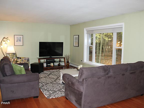 BEAUTIFULLY MAINTAINED HOME IN THE DESIRABLE POCONO MOUNTAIN WOODLANDS SITUATED on 1.03 ACRES! Close to town and major commuting highways this 3 bedroom 2 1/2 bath home offers eat in kitchen with granite counter tops, new appliances and new flooring. Additional dining area, master suite with 2 more bedrooms to boast. Living room with large picture window, hardwood floors and additional family room with 1/2 bath as a bonus. Laundry room, 2 car garage, newer roof and level yard set back off the road for added privacy. All this and LOW TAXES in the DELAWARE VALLEY SCHOOL DISTRICT makes this one you won't want to miss!