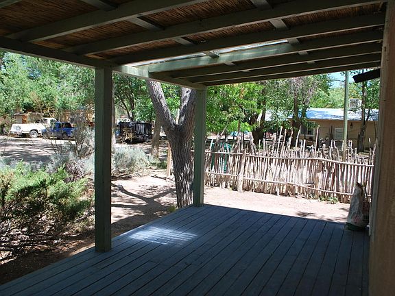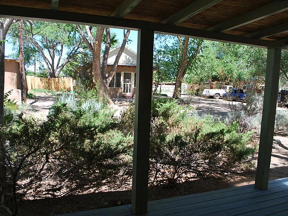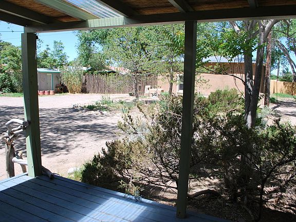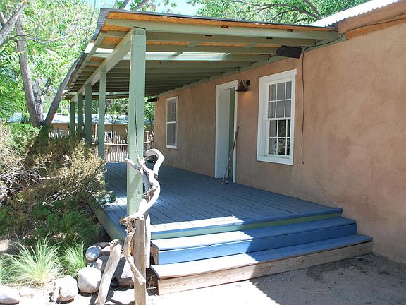 2 Bedroom, 2 full bath adobe casita on a very hidden placita right behind the Range Café. Quiet and beautiful neighborhood. 10 foot wide covered porch, metal roof, tankless hot water heaters, wood floors. If your buyer travels to the beat of their own drummer, show them this home!