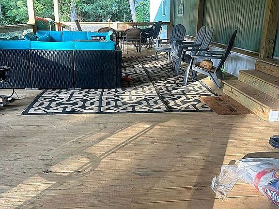 16x80 furnished single wide mobile home on approx. 1 acre in the White Oak Shores community. With annual dues, the property provides community access to a fishing dock, waterfront pavilion, boat ramp/loading dock/slip. It has a large backyard, boat or car shelter, and 16x36 covered back deck.
