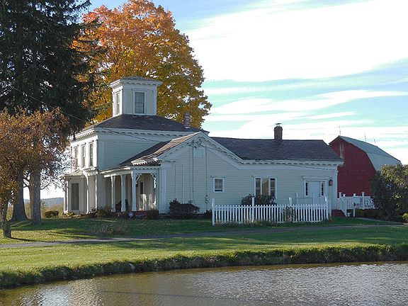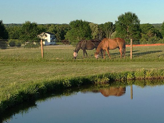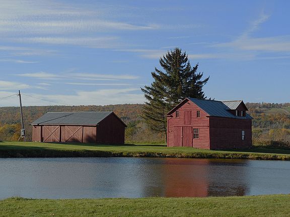 Antique farmhouse with several barns plus large pond and over 400 feet of creek frontage.