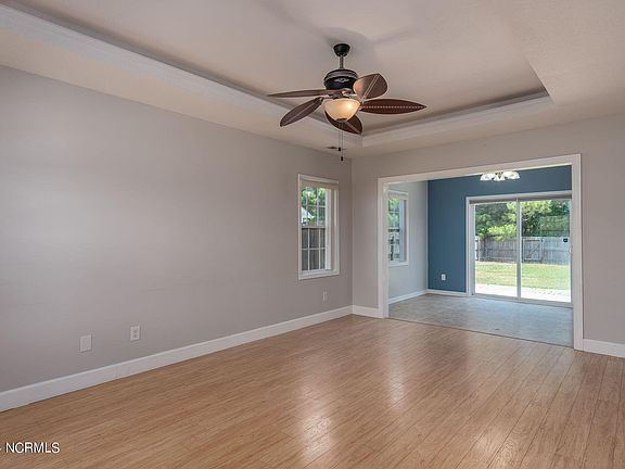 Welcome to your dream home in the sought-after Crooked Run neighborhood! This inviting 3-bedroom, 2.5-bathroom residence features an inviting front porch perfect for relaxing evenings. Inside, the open floor plan boasts a large living room, a spacious dining area, and a well-appointed kitchen with a breakfast bar and ample cabinet space, ideal for both casual meals and entertaining. The spacious owner's suite offers a peaceful retreat with plenty of natural light. Head outside to discover a beautiful patio, perfect for grilling and outdoor dining, along with a massive fenced-in backyard, providing privacy and a safe play area for kids and pets. Conveniently situated between MCAS Cherry Point and Historic Downtown New Bern, this home offers easy access to work, shopping, dining, and cultural attractions. Don't miss the opportunity to make this charming house your new home! Call us today to schedule your private tour!