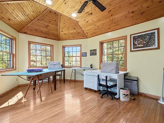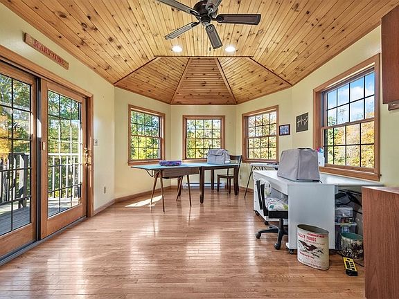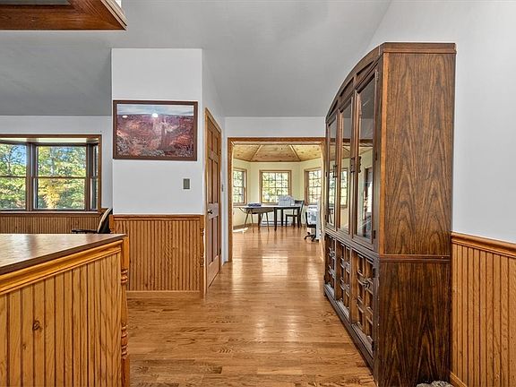 Imagine coming home to this charming brick home nestled on 1.2 acres. Front entrance opens into a stunning sunroom w/an abundance of natural light & wood plank ceiling. Gleaming hardwood floors carry into spacious living room w/wainscoting, bow window & beautiful brick fireplace. Preparing meals will be a delight in the updated eat in kitchen w/solid hickory cabinets, Corian countertops, tiled backsplash, pantry, & stainless steel appliances. Conveniently located off kitchen is a home office. Down the hall find the oversized master bedroom w/walk-in closet & en-suite bath. 2 additional bedrooms are light & bright w/ample closet space. Updated full bath w/tub shower combo completes this level. Split entry from the garage takes you to expansive lower level w/tons of potential, plumbed for bathroom, laundry area, additional room for storage & walk out entry. Enjoy the peace & tranquility of nature from rear patio accessed from the kitchen. Home is completed by a 2 car integral garage.
