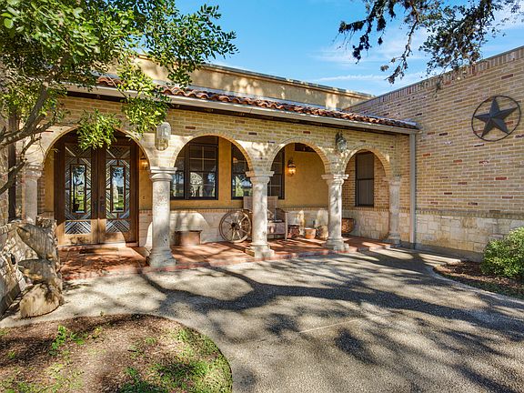 Resort San Miguel style Living on nearly 10 acres on both sides of seasonal Rebecca Creek and the famed Blue Hole. High end finishes in this decorators weekend home. Leaded glass entry doors, tiled front porch, chef's kitchen. Large living/dining area with fireplace.Speciality lights. Private master suite with luxe bath & his/her closets. Secondary suite with living/murphy bed and screened in porch. Large back covered patio & spiral staircase to 3rd sleeping area. BnB style garage guest quarters with kitchen, bath, & living.
