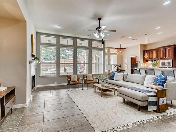 Sprawling 1 level home features multiple living spaces, beautiful Master Suite, open Kitchen + 4 car garages! Sits on a cul-de-sac street! Kitchen: tons of cabinetry, walk-in pantry, GE Profile SS appliances, bar seating, bar area + breakfast nook. Split bedroom plan offers xtra privacy for the Master Suite! Lg Master has private door to patio, walk-in shower, soaking tub, HUGE walk-in closet & double vanities. True main level living, home also has an office! This home truly has a wonderful floor plan!