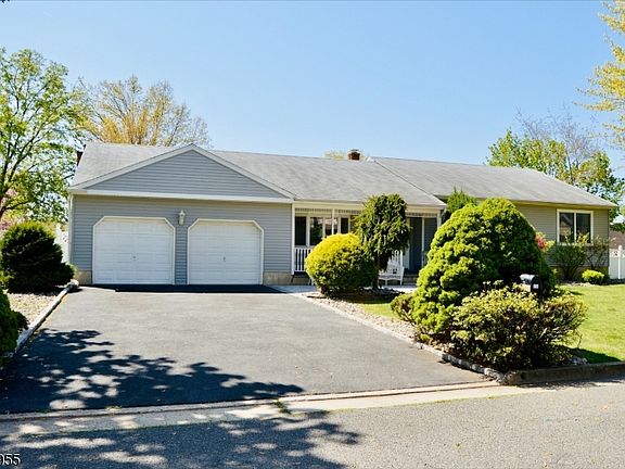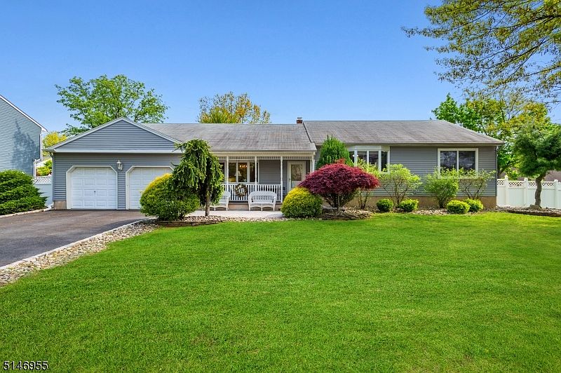 Back on market with new price! Fine, 4-bedroom ranch-style home on quiet street, with beautifully landscaped front yard. Enjoy relaxing on the rocking-chair porch or sharing a picnic on the new paver-stone patio. Newly paved driveway lined with Belgian blocks will accommodate 4 cars, in addition to the 2-car garage. From the Foyer walk directly to the renovated eat-in Kitchen: Quartz counters, stainless-steel appliances, large center island with breakfast bar & even more storage, huge pantry, special glass-front cupboards for displaying your finest pieces. Eat-in area accommodates a table for 6 to 8 people and overlooks the backyard. For a more formal occasion, your guests can enjoy the sunny Dining Room with its wide bay window. The room you will live in is the magnificent Great Room! It is 2 stories high with a brick wood-burning fireplace at one end and a lovely wood-finished wall at the side. Sliders provide access to the fenced backyard, and there's built-in storage for all of your media and project materials. In the bedroom wing, the Primary Bedroom has a large closet and an en-suite Bath with a jetted tub-shower and separate vanity area. The remaining three Bedrooms are all sizable, with generous closets. The smallest Bedroom is perfect for a Home Office. The full basement contains the laundry area and utilities. Two-zone heat provides customizable options for each wing of the home. The backyard is fully fenced with a white, vinyl privacy fence. Quick closing possible.