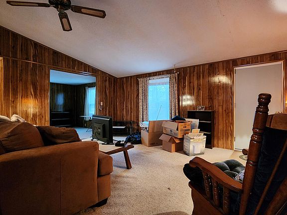 Some TLC need but this home could be a great value for the right buyer. 2 bedrooms and 2 Full Bathrooms. Open concept Kitchen, Dining and Living Space. Den/Office space. Primary bedroom suite with walk-in closet and full bath. 1st floor laundry hook-ups. Home offers true single story living. This is a manufactured home on a full foundation. Basement is daylight and walk-out. Nice 6 acre lot. Repairs are need to rear exterior wall and deck. Sale requires lender short sale approval. Contact us or your buyer's agent for more details.
