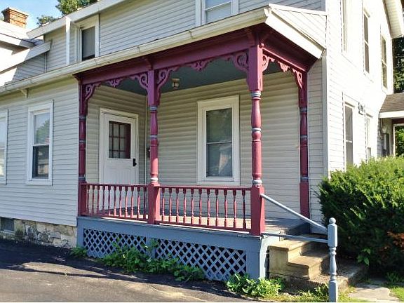 One-of-a-kind duplex. Perfect balance of character and modern amenities. Walking distance to downtown, hospital and post office. Currently set up as 2 units, but could easily be converted back to single family home. Each apartment has 2 bedrooms, 1 bath, and hardwood floors. First floor was the owner's unit. Extensive renovations including Kitchen with maple cabinets, stainless steel appliances, exposed brick chimney, and Bath with tiled shower & floor. Other features include French doors to Master bedroom, den with barn-style sliding door, and wall-to-wall bookshelf with hidden laundry nook. Second floor has huge eat-in-kitchen, laundry, bath with tub, and walk-in closet. Basement showcases new multi-zone boiler (2014). Enclosed rear porch has custom storage/kennel and access to the backyard. Vinyl siding for low maintenance. Detached 2-car garage and paved driveway for off-street parking. Turn-key property ideal for owner-occupant, or makes an excellent investment!