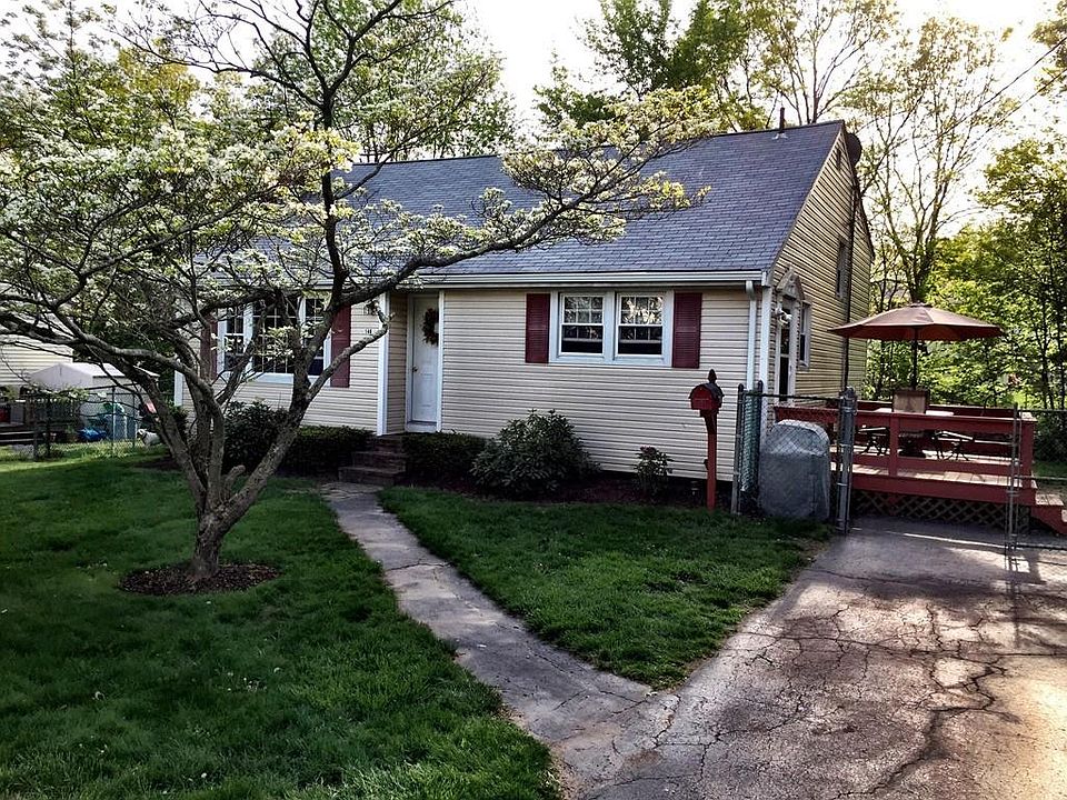 Move in ready open floor plan, updated eat-in kitchen and living room with a fireplace. Hardwood floors lead to three bedrooms on the second floor. The carpeted basement is suitable for a playspace or entertaining. The backyard and large deck are ready for a holiday cookout!