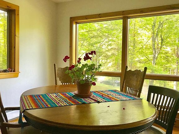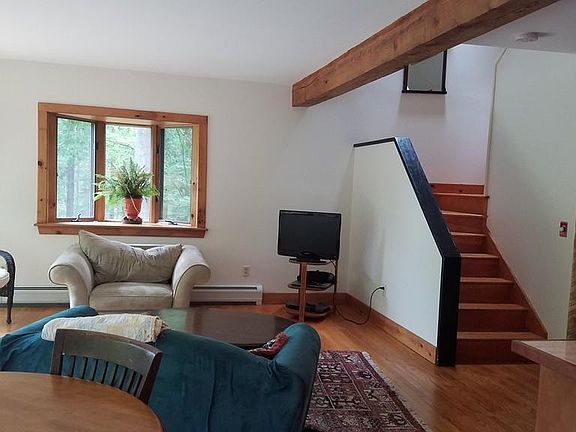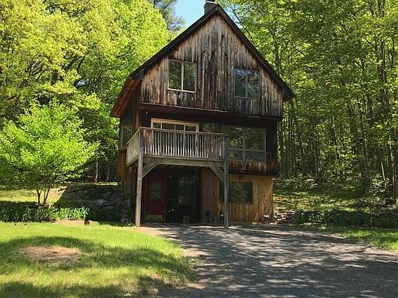 Located on a quiet,country road and nestled on an open 2.87 acre lot with wooded back drop is this three story contemporary. Sporting a warm, welcoming feel - a plethora of light fills this home throughout the day. Abutting acres of managed woodland the main house has an open,airy feel with wood floors, raised panel doors and natural woodwork. A newer kitchen and lower level full bath a plus! The large detached barn/garage has a flexible floor plan and makes a desirable studio or workshop - previously rented as an apartment with a monthly rent of 800.00. Well maintained, both house & barn have a new roof. Minutes to Amherst center and major routes, it's a great place to hang your hat!