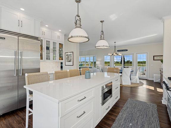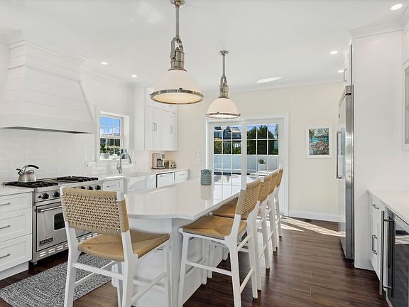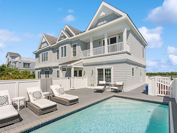 This Exquisite Bayfront Estate exudes Hampton Charm and Luxury Living. Perfect for entertaining, or just relaxing with family and friends, this Bayfront stunner offers something for everyone! The comfortable living space affords 6 bedrooms, 5 bathrooms (sleeps 15) with a junior primary on the first floor. Enjoy the beach with your private path to the ocean, boat dock accommodating a small boat and/or jet skiis for water enthusiasts, expansive decking surround, roof deck, heated gunite pool, outdoor shower, gracious backyard with sizable lawn and play yard, and generous parking. Stunning waterviews and sunsets complete this exceptional Hampton's rental. Available July 23-August 7th $55k