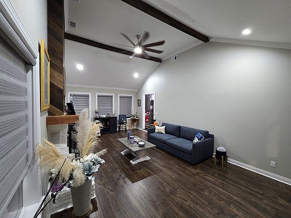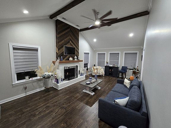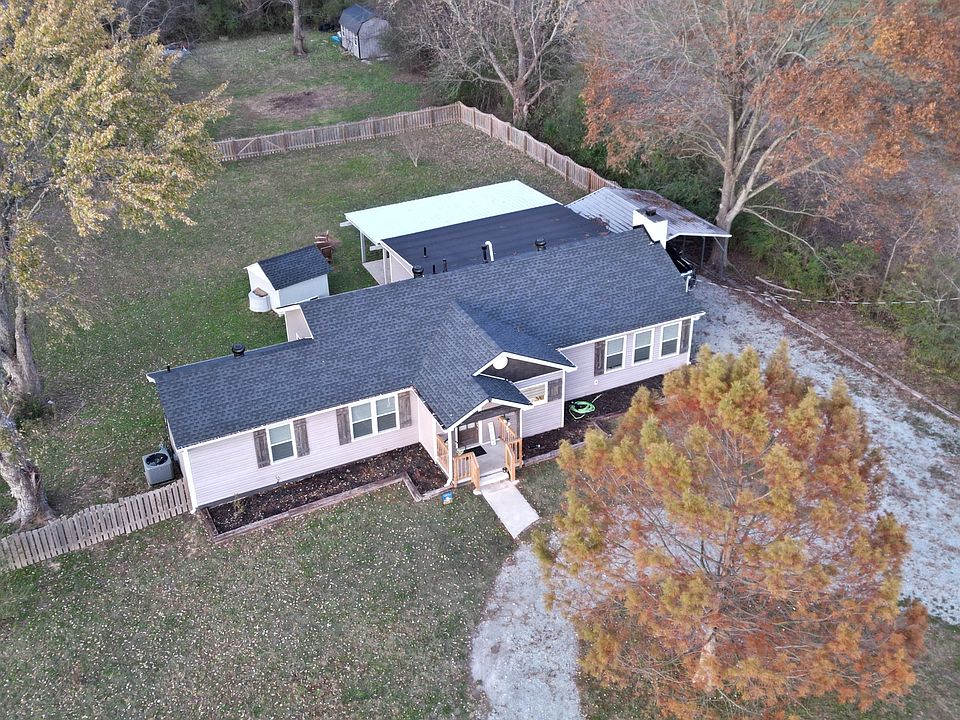 This lovely well maintained 3 bd/2.5 bath home in a country setting, but a very convenient location to everything was completely remodeled in 2022 with all new wiring and plumbing. Upgrades include custom kitchen cabinets, quartz counter tops, gas stove with a pot filler, microwave, a custom built in dinette, and a gas log fireplace in a spacious living room. Sunroom overlooks spacious back yard on 1.22 acres +-. The covered concrete patio is so nice for enjoying your time outdoors. Brand new roof and HVAC as of 2022. You will enjoy the large master suite with a walk-in closet and ensuite that has a soaker tub and separate shower. The two full bathrooms have the upgraded light up round mirrors.