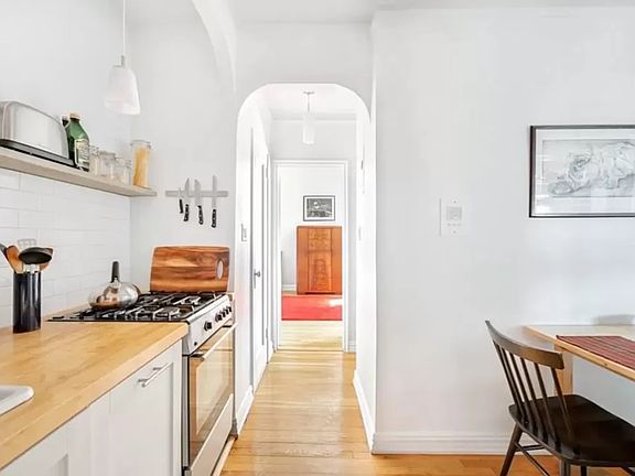 Sun-lit, spacious and no attention to detail spared - welcome to unit 5L. You are greeted at the entryway with gleaming hardwood floors as you step into the stunning eat-in kitchen featuring a large dining area with built-in shelving. This turnkey home features an oversized living room, king sized bedroom, beautifully renovated windowed bathroom all combined with original pre-war charm and ample storage space. Set in a well maintained and amenity filled co-op in Windsor Terrace, the very pet friendly building features two elevators, shared outdoor space, bike room, storage, laundry room, live-in super, playroom and a new music room. Located steps from Ft. Hamilton Parkway and neighborhood favorites such as Brancaccio's Food Shop, Steeplechase, Batata, Hamilton's, and Jaya Yoga. Stunning AND convenient, you are just three blocks to the F/G trains and a short walk to Prospect Park. There is a current assessment of $45.44 a month through the end of the year for ceiling pinning.