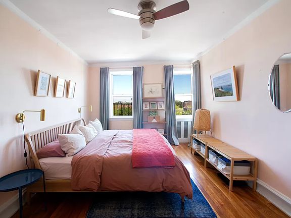 Enjoy sunny, top-floor views of Windsor Terrace from this oversized 1-bedroom with hardwood floors throughout. Unit 6T features beautiful light from East, South, and Northern exposures. Enter the gracious foyer with original archways, coat closet, and flexible space that accommodates a dining area or home office. The generous living room can easily be adapted to meet your needs. King-sized bedroom with room to spare. Renovated galley kitchen with abundant storage. The bathroom has also been fully renovated, and all four closets have been completely redone to maximize storage. A classic pre-war building, 140 E 2nd is a pet-friendly, well-managed elevator co-op with a live-in super, 24-hour laundry room, package area, dedicated stroller parking, children's playroom room, and music rehearsal and recording studio. Bike parking and storage lockers are available for an additional fee. Located a few short blocks to the F/G trains, and a 10-minute walk to Prospect Park, with Citi bike docks on the corner as well. Close to some of the best coffee shops and restaurants that Windsor Terrace has to offer, including Steeplechase, Windsor Coffee, Batata, Stang Thai, Hamilton's, Della, Cena, and Le Paddock. Maintenance includes heat and hot water, as well as Spectrum high-speed internet and premium cable, including subscriptions to HBO Max and Showtime. There is a $48.58 assessment in place through 2022. Amenities: Hardwood floors Dishwasher Cats & Dogs allowed Elevator Live-in super Laundry room in the building Children's playroom Lockers/cages Shared backyard Bike room Package room Music room Wheelchair access Spectrum