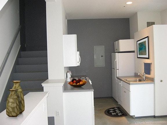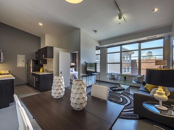 Unit features loft layout, A/C, high ceilings, dishwasher/disposal, garage parking. Beautiful building. Pet friendly. Heat and hot water included in rent.