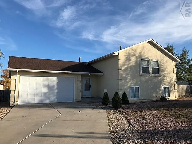 Great Pueblo West Bi Level with 4 bedrooms and 2 full bathrooms. The upper level is very open with kitchen, dining area, living room, master bedroom and full bath, new tile flooring throughout. Deck is off of the kitchen. The lower level has 3 bedrooms, full bath and family room. HUGE fenced backyard great for entertaining, 2 car attached garage and RV parking. This home is a must see!