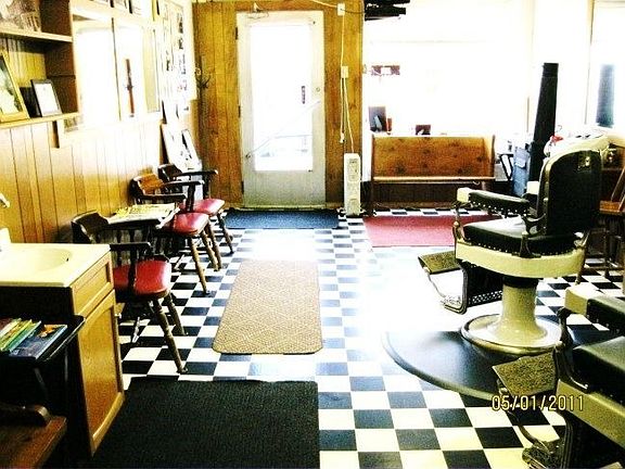 Long time barber shop available for your own business opportunity. Sellers are relocating and have discounted the price to sell now, and are including much of the furnishings. Could be converted to an office space or small retail business as well. One bedroom apartment above for rental income or living quarters, but does need some finishing touches. Come take a look and bring your ideas.