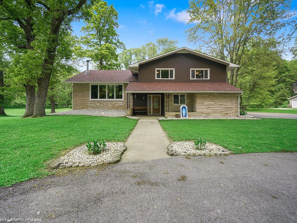 Limestone meets cedar in this beautiful Quad-Level home on almost 2 acres. Step into the slate entryway with 2+ car heated garage. Woods as your backdrop and over 2400 sq. ft. of living space. All new slider casement windows with Pella front picture window, updated bathrooms, hardwood floors, limestone gas fireplace with stacks of wood to boot! Kitchen has maple floors, SS appliances, French doors into 3-Seasons room with beautiful private backyard views. Upper level Master has attached 3/4 bath with 2 additional large bedrooms and double vanity shared full bath. Ground level incorporates the light filled den, laundry and 1/2 bath with bsmt. level Rec. Room with office/bedroom options. The basement utility room offers plenty of storage space and a place for everything in this perfect setting. Plenty of parking in the U-shaped drive with side load garage. Location, Price and Setting with easy access to rails, beach and trails. Adjacent lot purchase option! Home Warranty Included.