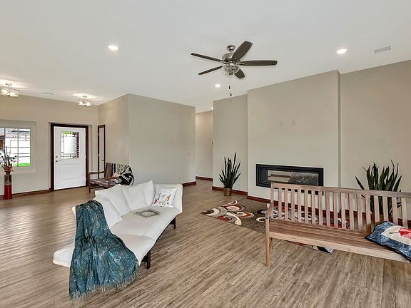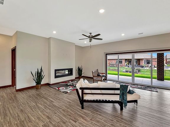 Beautiful new build no step or zero entry craftsman style home. Extremely low HOAs approx $25/mo. "Logix" insulated concrete form (ICF) with sixteen inch walls. ICF built homes are extremely safe from high winds and much more efficient then stick built homes. Exterior is all brick and has a 650 square feet covered patio with lights and outlets in the back with lake view. Interior is all new and has a lot of custom finishes. There are three double sliding door entries to the back patio and lets in a lot of natural light. Inside there is nine foot tall ceilings throughout. Kitchen has new granite and custom knotty maple cabinetry and matching in the bathrooms. Kitchen has under cabinet lighting. R49 Insulated ceilings to add to the efficiency. Living room has a spacious open design with french style patio doors 11'5" wide x 7' high. It has a see through fireplace "Koze Heat" by Calleway direct vent gas with remote. Large master suite with dual vanities and "wet wall" by Wilson Art Company shower surround. It also has a rain shower and glass door. Master closet has a window and extra custom shelving for more storage. Separate sound proof room with it's own entrance from the three car garage perfect for a guest suite. It also has french door entry and opens to the back patio. Similar set up as the master suite with "Wet Wall" shower and spray faucet. Garage is insulated and completely finished out. Feel free to set up your private showing today!