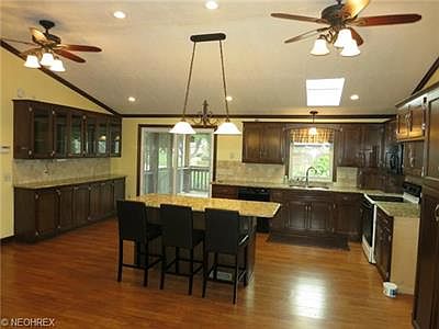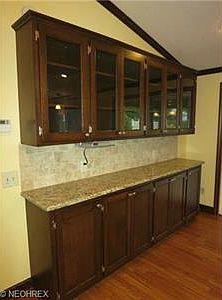 Wow...what a surprise in this quiet neighborhood! Step into this kitchen/dining area and you'll fall in love with the cathedral ceiling w/skylights, recessed lights, granite counters, abundance of cabinets w/under and above lighting, center island w/stools, appliance garage, laminate floors, built-in desk w/filing cabinets, cabinet slide-outs, and more... Family room has gas fireplace and wall mount for your flat screen with built-in cabinets for stereo and television components. Off the family room is half bath and laundry/mud room. Other features of this lovely property include 4 BR, oak trim and six-panel oak doors, 2 1/2 baths, and newly finished basement. The large corner lot boasts 30' above-ground, heated pool with 15x30 deck, storage shed, and privacy fence. Updates include furnace '14, windows & siding '11, pool & deck '11, huge concrete drive '10, roof '22, and more.