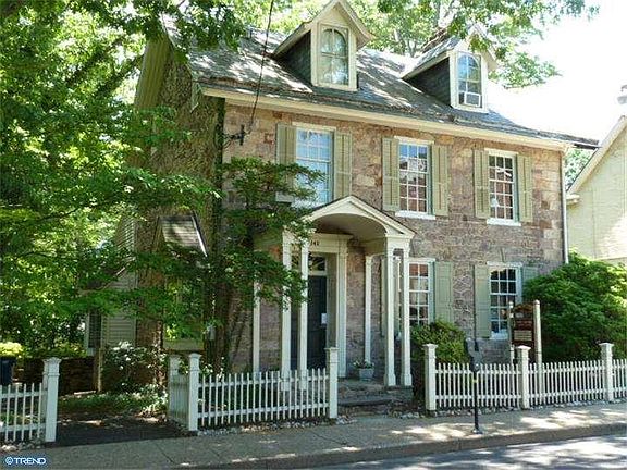 One of the classic properties in Doylestown Borough. The 'John Barclay' house is 202 years old this year. It was built in 1814 as the home of John Barclay, an attorney and later a judge for Bucks County and is listed on the historic registry. When the county seat was moved from Newtown to Doylestown, but before the courthouse was completed, cases were heard in John Barclay's home. The original three story stone portion has remained remarkably the same. There are two frame additions to the back. It oozes charm and ambiance with built-in bookcases and original wood floors. It could easily become a single family residence again with the addition of a new kitchen and bath conversions. It would be a spectacular home within walking distance of everything in the center of town. There could be 5 fireplaces including one walk in fireplace. In the rear of the property is a separate carriage house which is included in the sale. It is presently rented for $950 a month. The carriage house consists of Living/Dining Room, Kitchen, Bedroom and Bath. Located across the street from the Bucks County Bar Association, two blocks from the courthouse, the new justice center and Main Street everything is within walking distance including great shopping, dining and public transportation. This is, also, a very desirable location for many types of businesses. With off street parking in the rear for 11 cars the Barclay house has been operated as a law firm for the past 17 years and an architect's office prior to that. It offers three floors of office space plus two additional offices in the basement for a total of 3,548 SF. Current zoning is CR. Please see the Commercial listing both for sale and for rent.